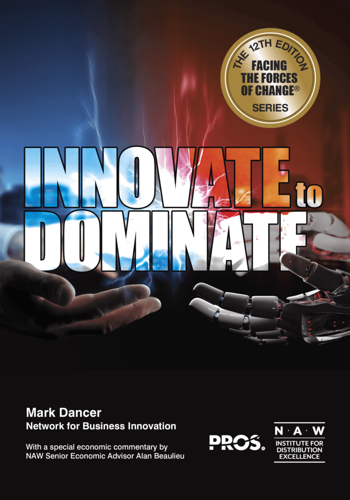 Die National Association of Wholesaler-Distributors (NAW) hat ihre neueste, bahnbrechende Forschungsstudie "Innovate to Dominate" veröffentlicht: The 12th Edition in the Facing the Forces of Change® Series" veröffentlicht. Seit ihrer Einführung im Jahr 1982 liefert die angesehene "Facing the Forces of Change Series" der NAW immer wieder Erkenntnisse über die allgemeine Zukunft des Großhandels und die Rolle der Großhändler-Distributoren. Innovate to Dominate" ist bereits ein Bestseller und der unverzichtbare Innovationsfahrplan für jeden Vertriebshändler. Der Hauptzweck dieser Studie ist es, den Händlern zu helfen, die Punkte zwischen den Kräften des Wandels und der Innovation des Geschäftsmodells der Händler zu verbinden. NAW ist stolz darauf, PROS als Sponsor der 12. Ausgabe zu haben.