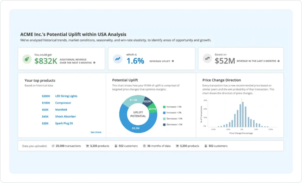 Stay competitive by adjusting pricing strategies as market conditions change. AI identifies patterns in price trends, aggregate customer behavior, and market shifts to help you make smarter pricing decisions over time.